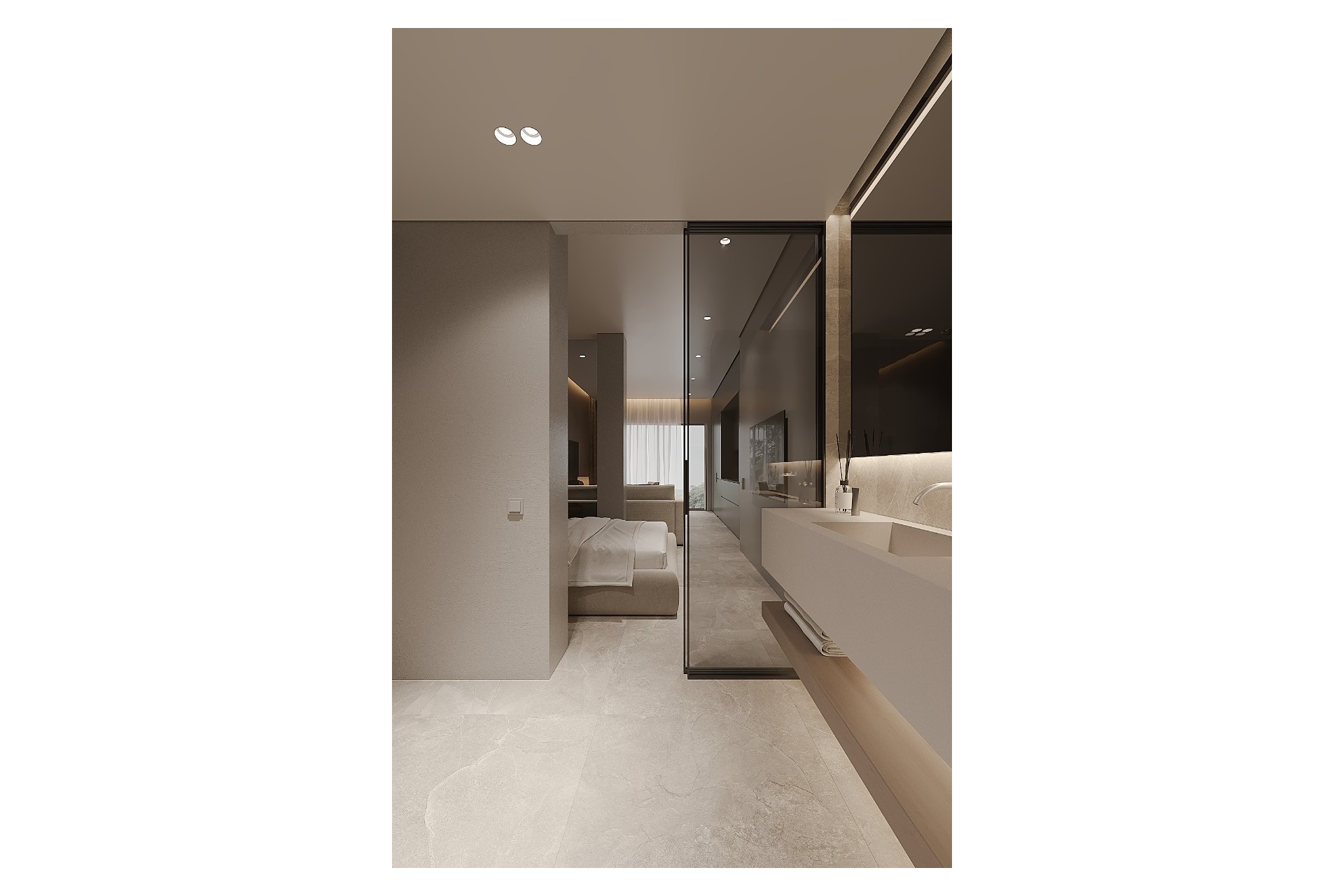 Acabados de lujo con revestimientos porcelánicos y cerámicas de diseño (PORCELANOSA, GIBELLER o similar).Climatización por conductos con bomba de calor de alta eficiencia.Ventanas panorámicas con persianas automáticas y vidrio con control solar.Suelo radiante en baños y vestidores.Acceso a piscina comunitaria.