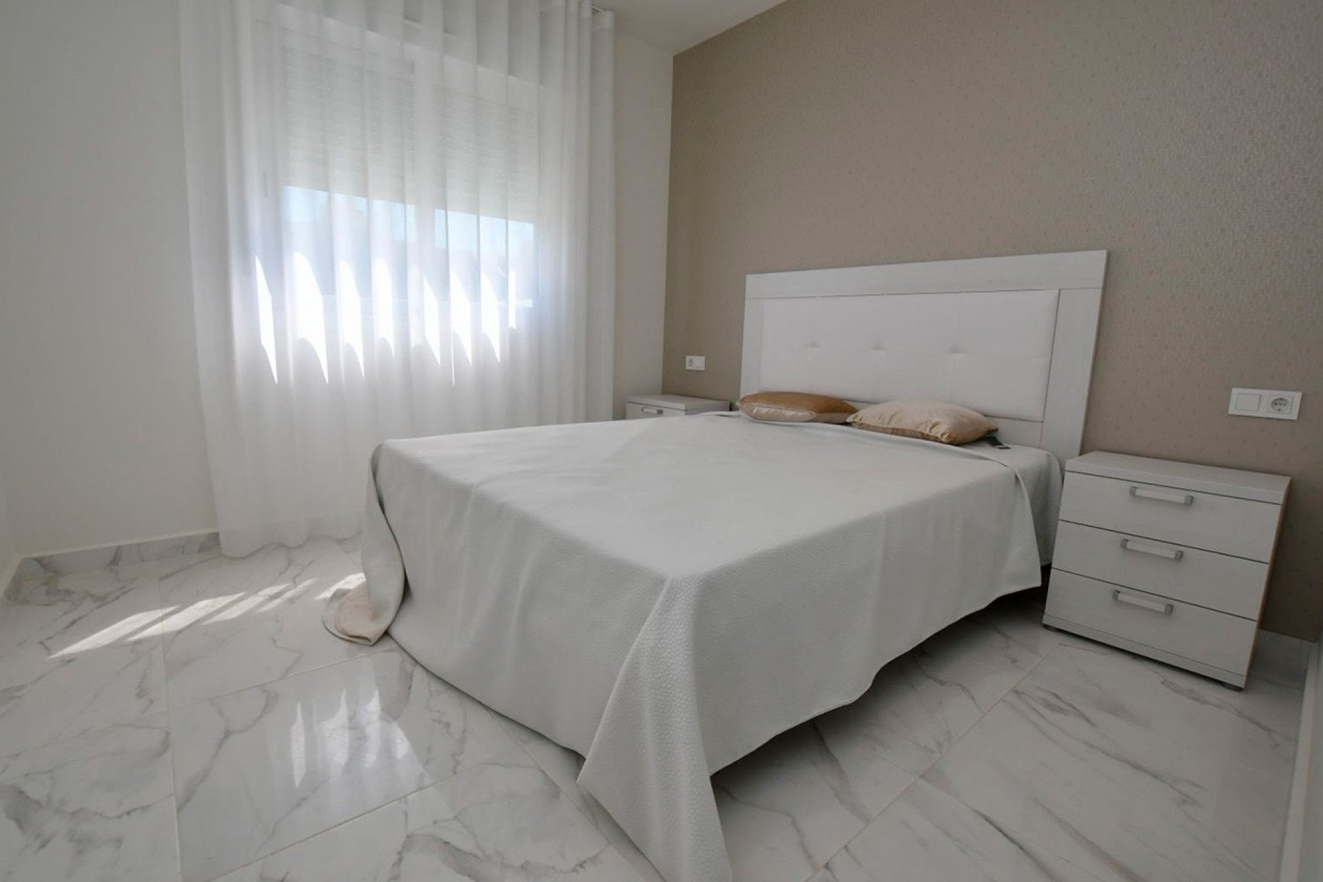 Las viviendas han sido diseñadas para ofrecer amplitud, luminosidad y un estilo de vida cómodo y contemporáneo. En planta baja cuentan con dos dormitorios, dos baños, amplios jardines privados y aparcamiento en superficie; mientras que en planta alta disponen de dos dormitorios, dos baños, un solárium de gran tamaño y plaza de aparcamiento, con el valor añadido de disfrutar de espectaculares vistas al mar. Gracias a sus generosas dimensiones interiores, todas las viviendas ofrecen la posibilidad de personalizar la distribución para incorporar un tercer dormitorio, adaptándose así a las necesidades de cada familia.
