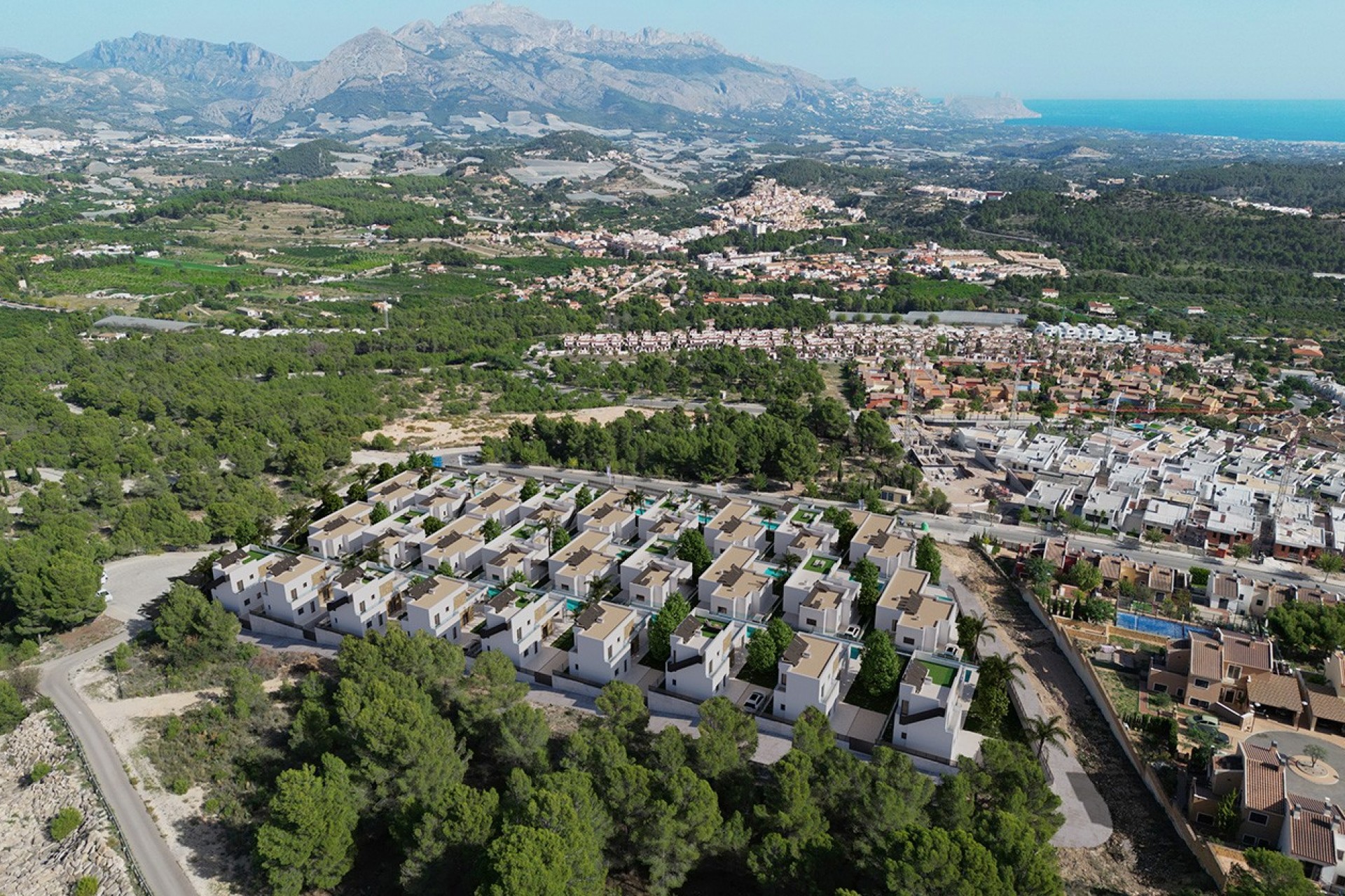 Costa Blanca Eiendom presenta estas espectaculares villas contemporáneas independientes, que ofrecen una combinación perfecta de diseño moderno, funcionalidad y una ubicación privilegiada en el tranquilo municipio de Polop, rodeadas por un entorno natural excepcional que combina vistas al mar Mediterráneo, al Monte Ponoig y a los paisajes verdes de la región.